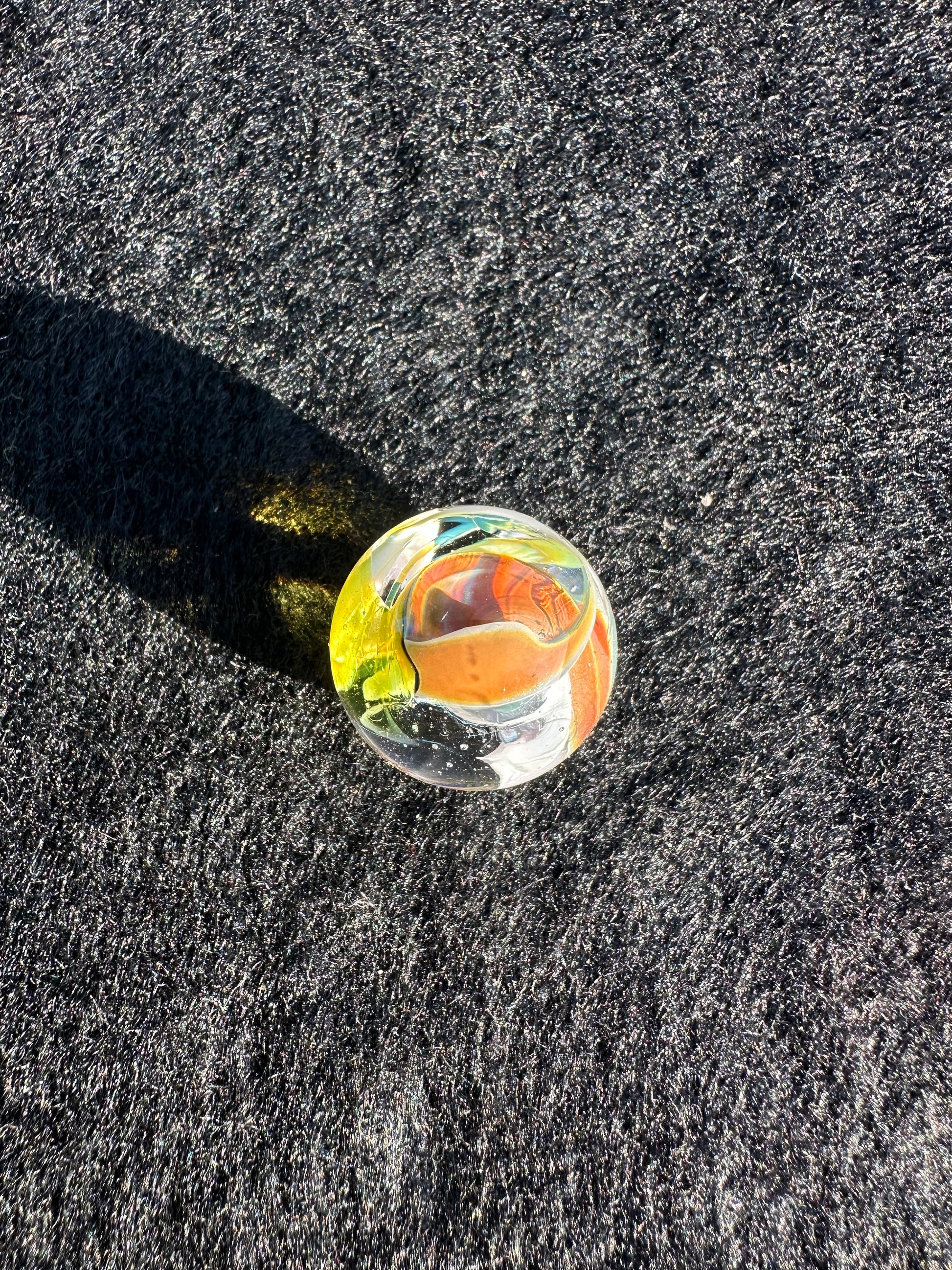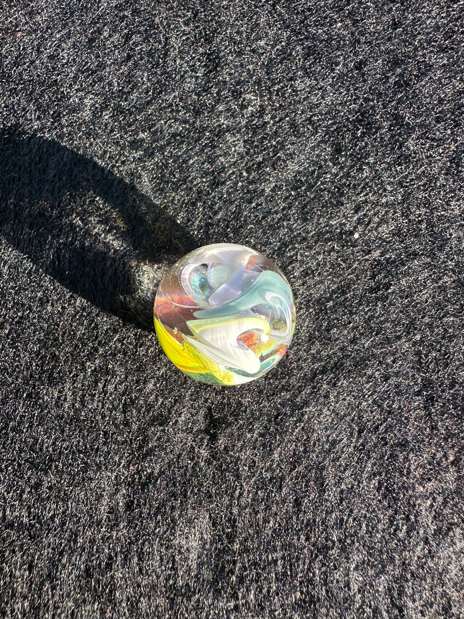 This one-of-a-kind Chaos Marble was handmade by artist Jaime Torres in Beaufort, South Carolina. Compact and vibrant, it captures layered swirls of flame-worked color suspended in clear borosilicate. Each turn reveals new patterns — unpredictable and full of energy.